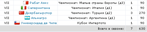 В VII сезоне Вифа Бот был менее востребован и сыграл всего в 7 играх, причём 3 из них в составе турецкого клуба с труднопроизносимым названием Диярбакырспор, и именно в составе этого клуба Бот получил свой первый минус к силе в WIFA. Но в этом сезоне был и позитивный момент для Бота, наш герой дебютировал в еврокубках.